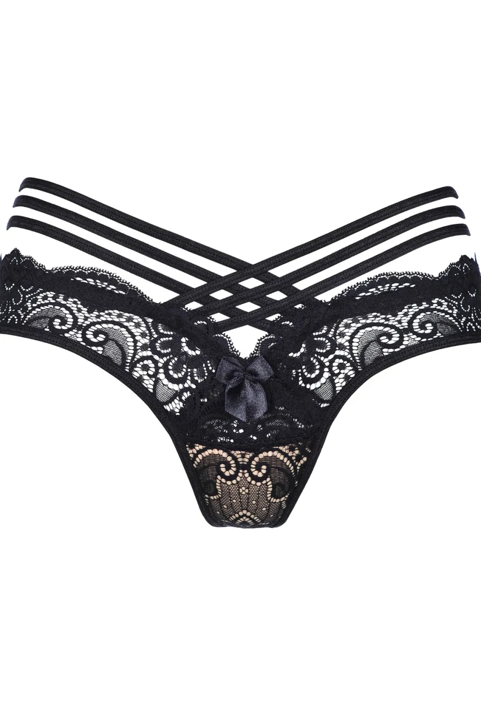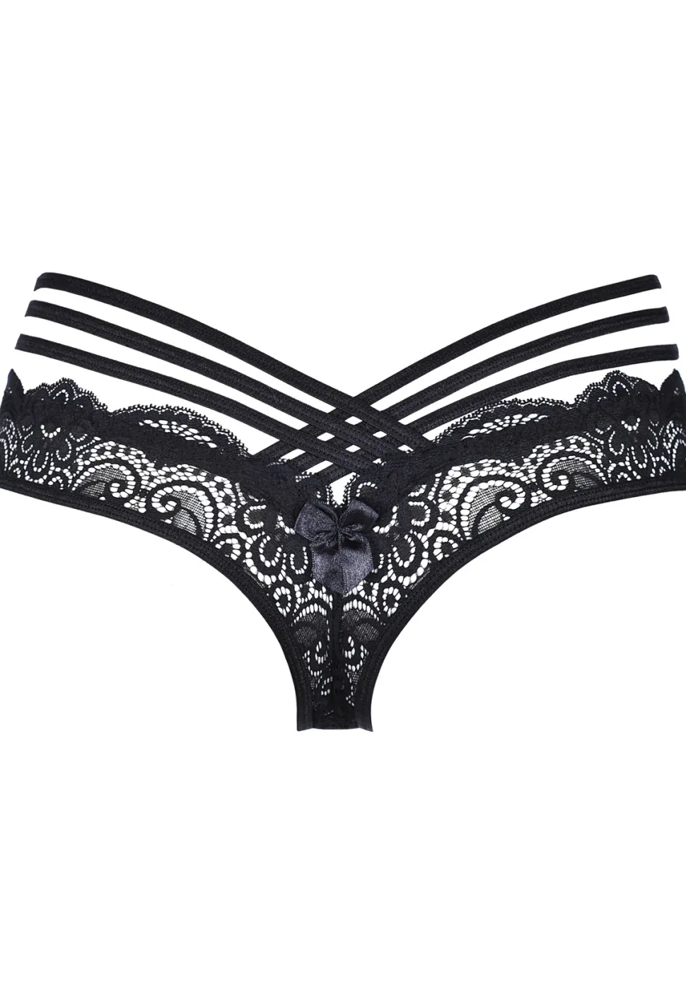 Verführe Deinen Schatz in diesem knappen String aus sinnlicher Spitze. Allein der knappe, hüfthohe Schnitt macht Dich zur anmutigen Verführerin, doch der String kann mehr: Die sich kreuzenden, elastischen Riemchen auf der Vorder – und Rückseite lassen besonders viel Haut frei – absolut sexy!