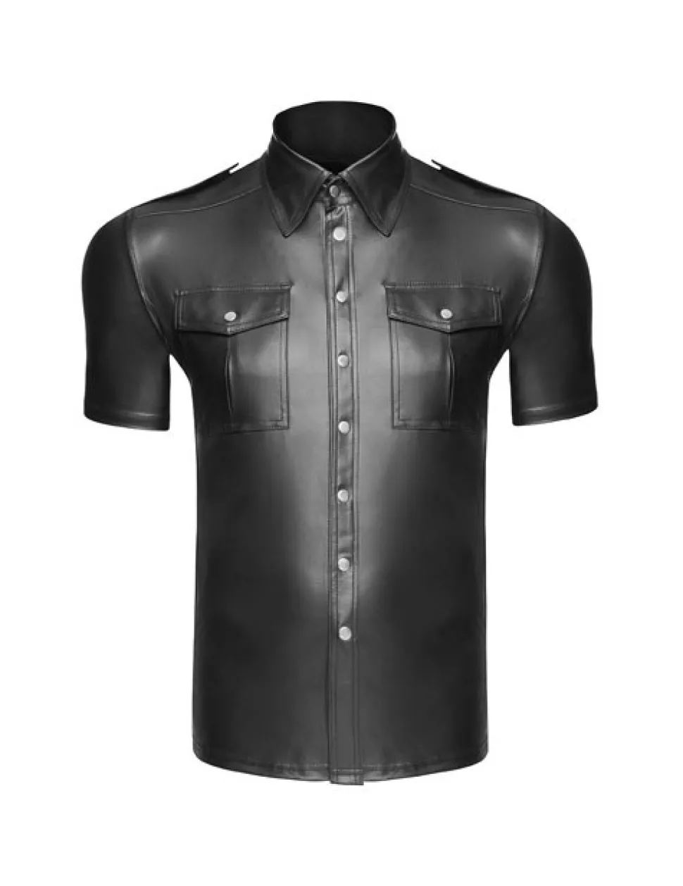 Hier zeigt Noir Handmade wie gut ein Wetlook Hemd aussieht, und wie leicht und angenehm es sich tragen lässt. Aufwändige Schnittführung mit Schulterklappen, Pattentaschen und Druckknöpfen. Das feine, weiche, elastische Material wird der exklusiven Verarbeitung gerecht.