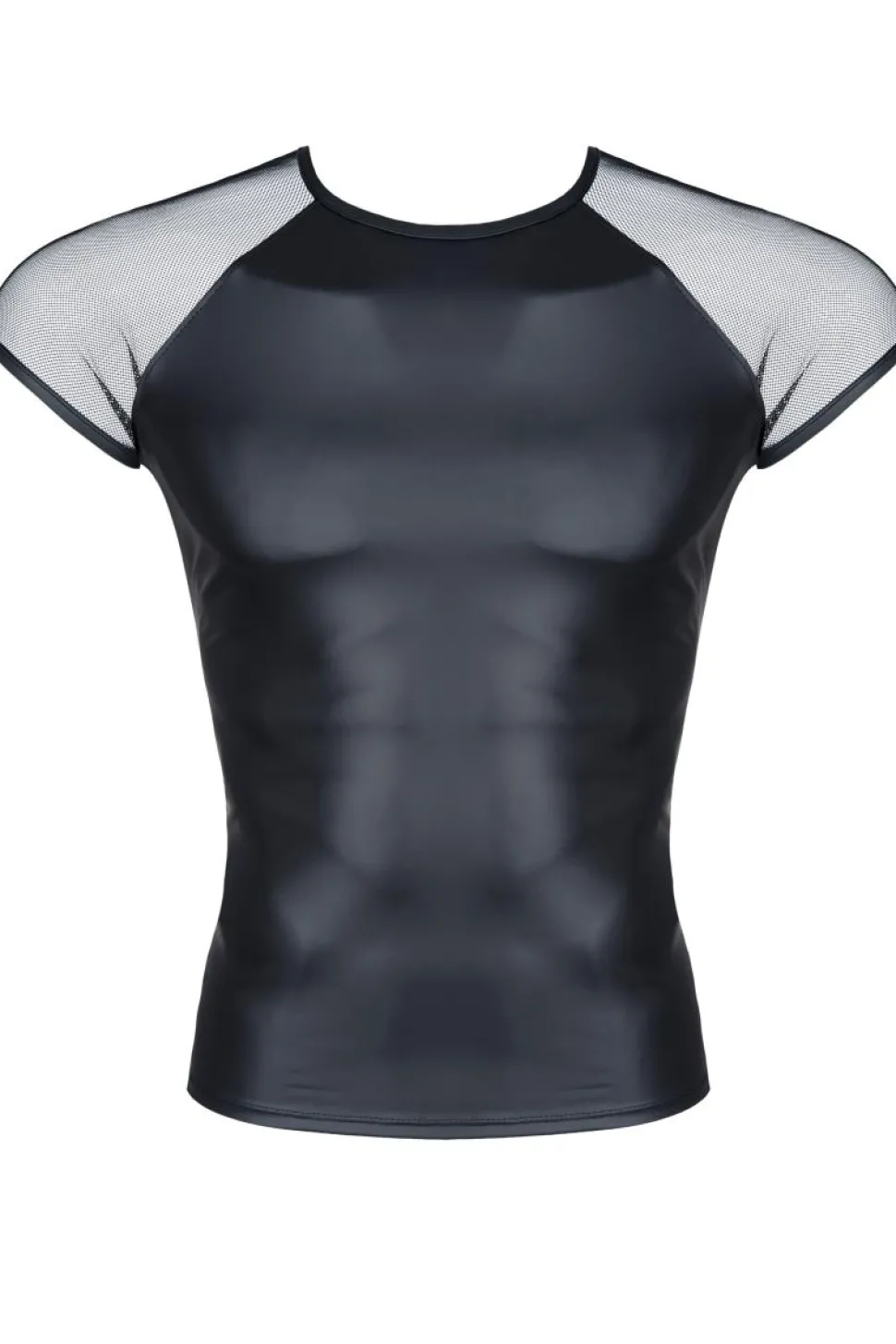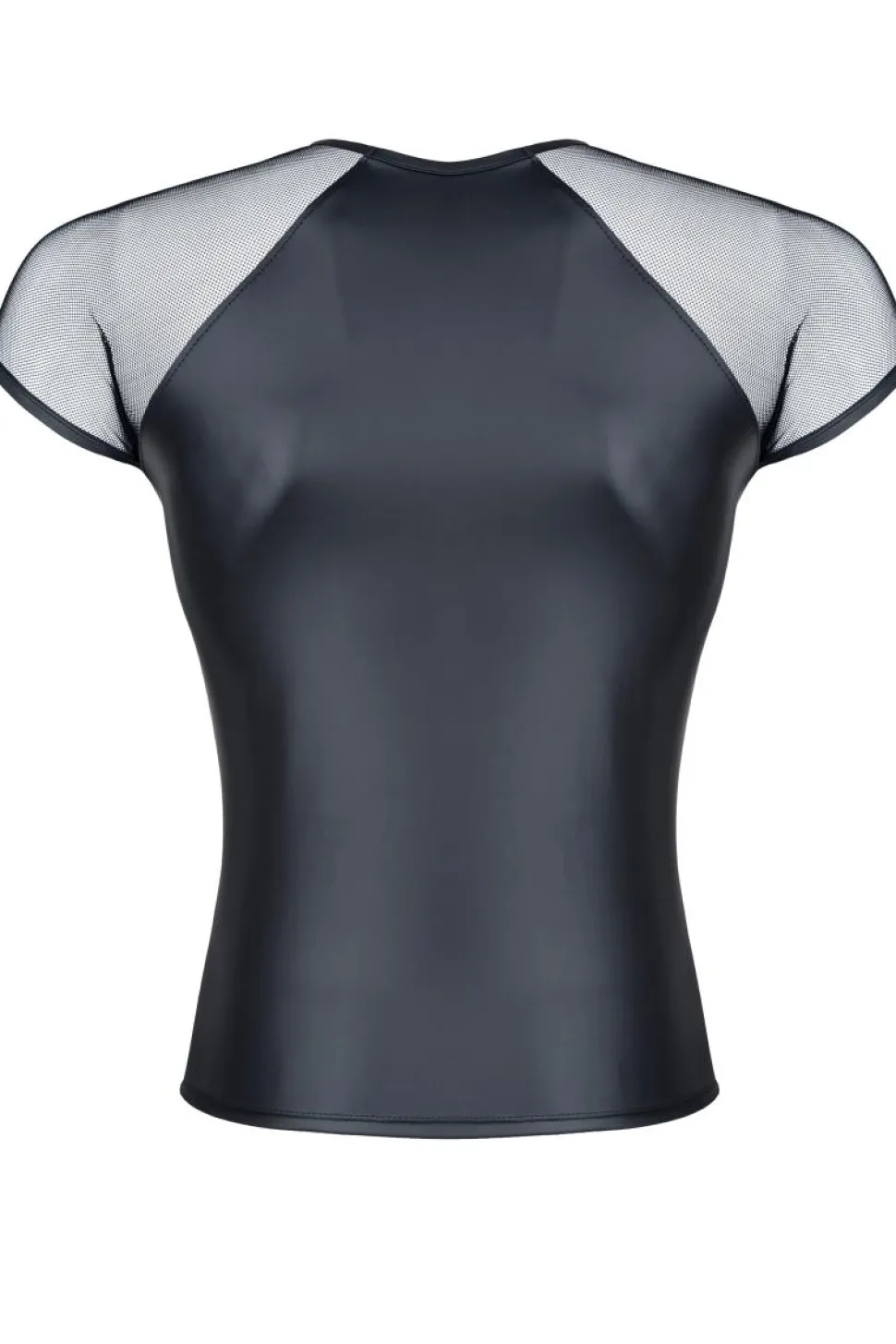 Tolles T-Shirt, gefertigt aus dehnbarem sexy Tüll und mattem Wetlook-Material. Ein Hingucker!